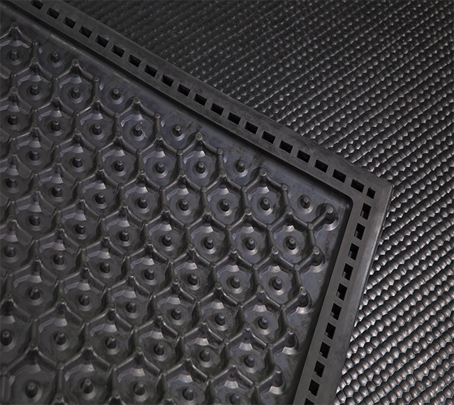 表面有花紋,底部有凹槽。具有良好的彈性和耐磨性。防滑設計也易干清洗